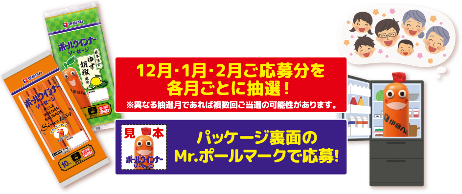 • お客様がご応募の際に記入された個人情報は、景品の抽選・発送、伊藤ハム米久ホールディングスグループが運営するポイントプログラムサービス・ECサイトのご案内、および個人を特定しない統計資料の作成以外の目的で使用する事はございません。
