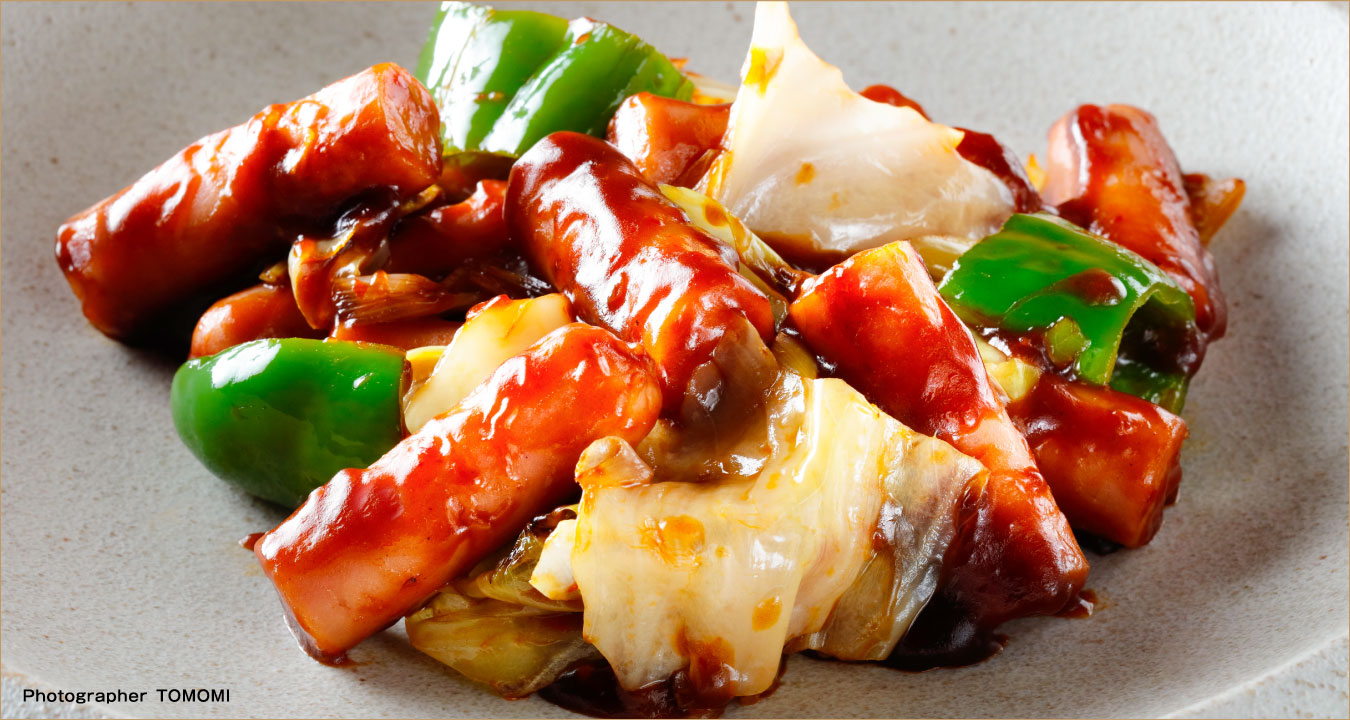 ⑤に③の合わせ調味料を加えて和えるように混ぜ合わせながら2〜3分炒めて皿に盛る