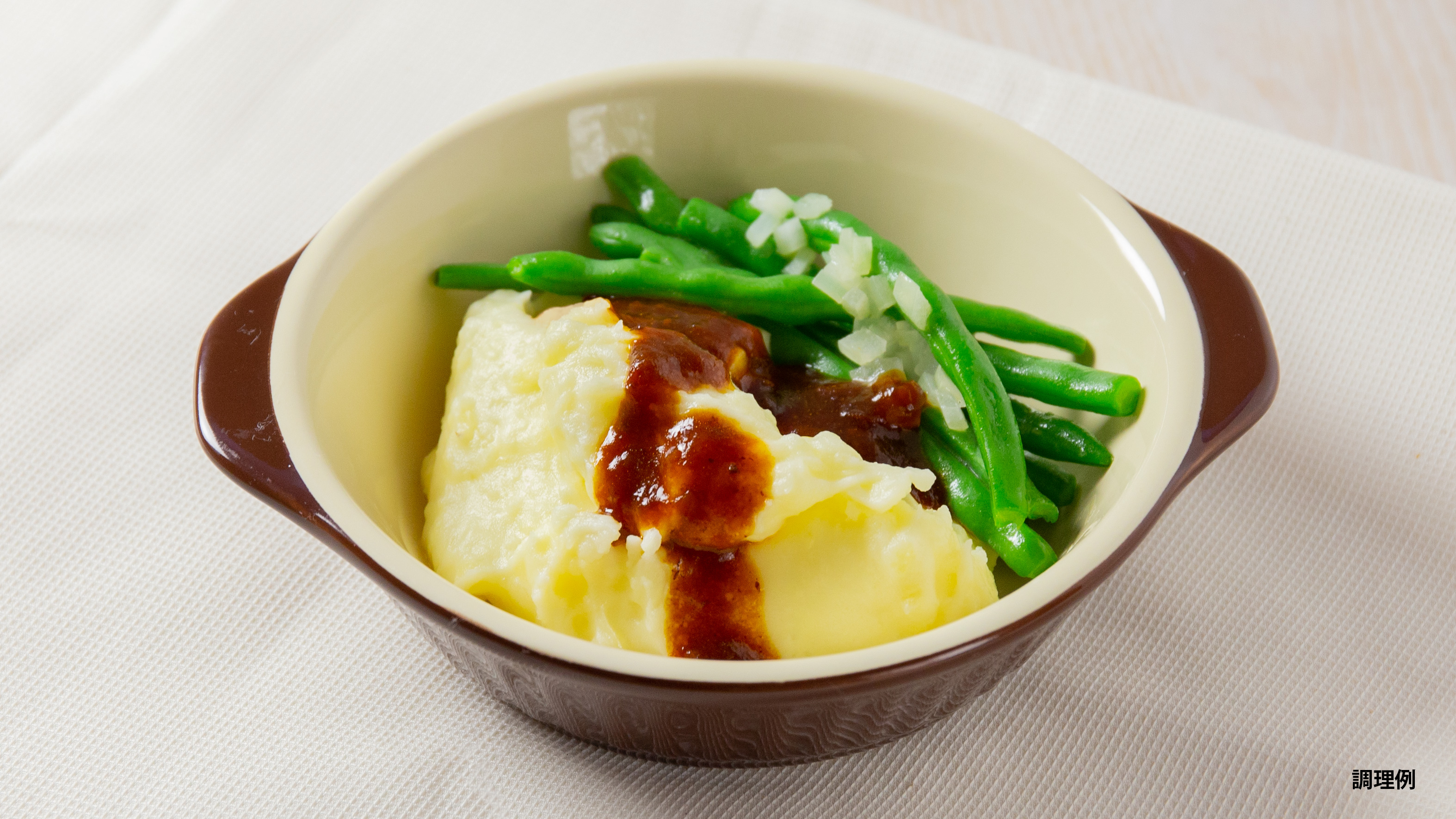 付け合わせの定番マッシュポテトにチーズを加え、コクのある味に仕上げました。