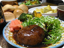 1個当たりの大きさが予想以上に大きい。我が家で作るサイズとほぼ同じくらいのサイズ。ソースもたっぷりで、添え野菜ソテーは薄味に用意していっしょに食べると、とっても美味しくいただけます。お肉もとってもジューシー。旨みをギュッと包み込み、お肉にソースがしっかり絡んだハンバーグ。ごはんが進む一品です。時間がないときの夕食にもぴったり。