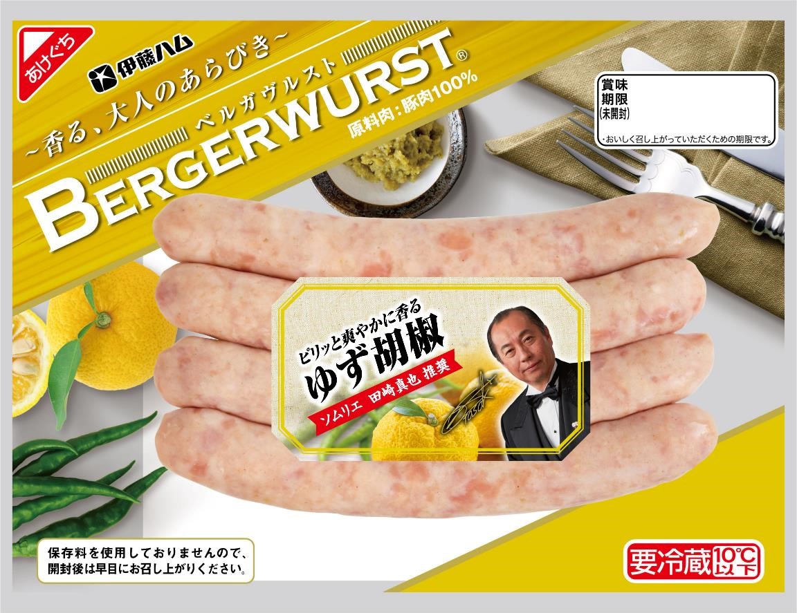 | 伊藤ハム株式会社は、こだわりのソーセージ「BERGERWURST®(ベルガヴルスト)」シリーズから、新たに「BERGERWURST® ゆず胡椒」を発売します。また、シリーズ全品のパッケージデザインをリニューアルします。
