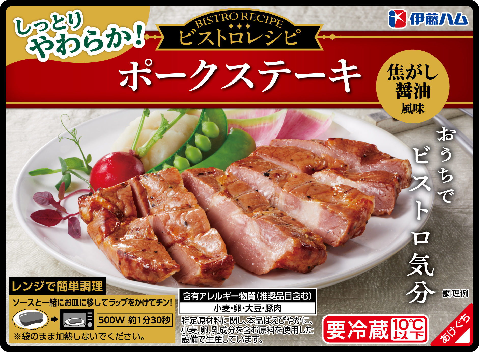 | 伊藤ハム株式会社は、「ビストロレシピ®」シリーズより、夕食向け商品の「ポークステーキ」2品と、食べ切りサイズで使いやすい「ハーブ&ガーリックチキン切り落とし」を発売します。 |