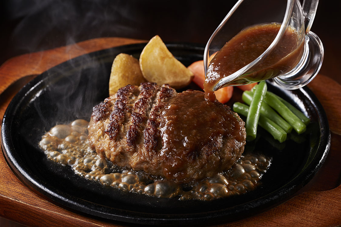 「宮のたれで味わうハンバーグ」は、ステーキ・ハンバーグレストラン「ステーキ宮」で長年親しまれている「宮のたれ※」をかけて味わうハンバーグです。「内包と外包でミンチの挽き目を変えた二層構造」により、ジューシーさと肉粒感を楽しめます。また、食欲をそそる香ばしい焼き目にもこだわり、家庭調理では再現が難しい外食クオリティを目指しました。後がけの「宮のたれ」をかけて味わうスタイルで、夕食のメインを飾るにふさわしいボリュームと満足感です。
