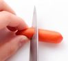 (2) 赤ウインナーは、斜めに包丁を入れて2等分する。