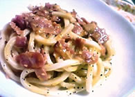 隠し味に昆布茶を加えた、うどんで作るカルボナーラです。
