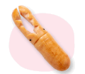 ポークビッツは3か所に包丁を入れ、両目と手に分ける。