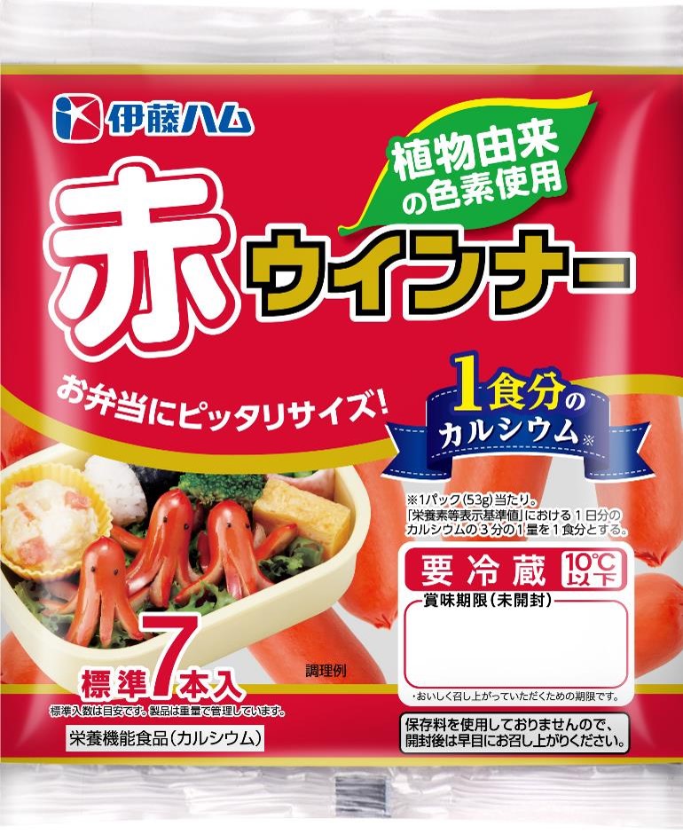 赤ウインナーは半分に切り、1枚をはさむように竹ぐしを置き、3mmくらいの間隔で切り目を入れて髪にする。